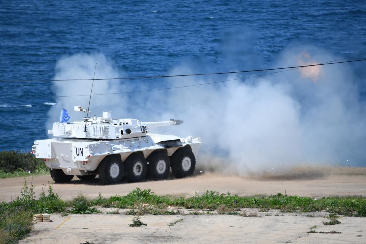 A LAF soldier and a UNIFIL peacekeeper after completing the month-long joint training. The soldiers from the Lebanese Army crouch behind a burnt-out car. Smoke flares diminish the visibility and the sound of gunfire is…