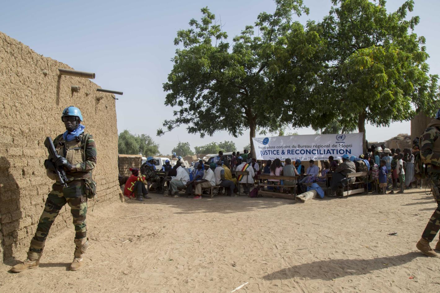 A convoy of several heavily-armored vehicles cross the sandy streets of the remote village of Dangatene. The white vehicles with a black UN logo are crossing a stretch of land in southeast of Mali’s central Mopti region…