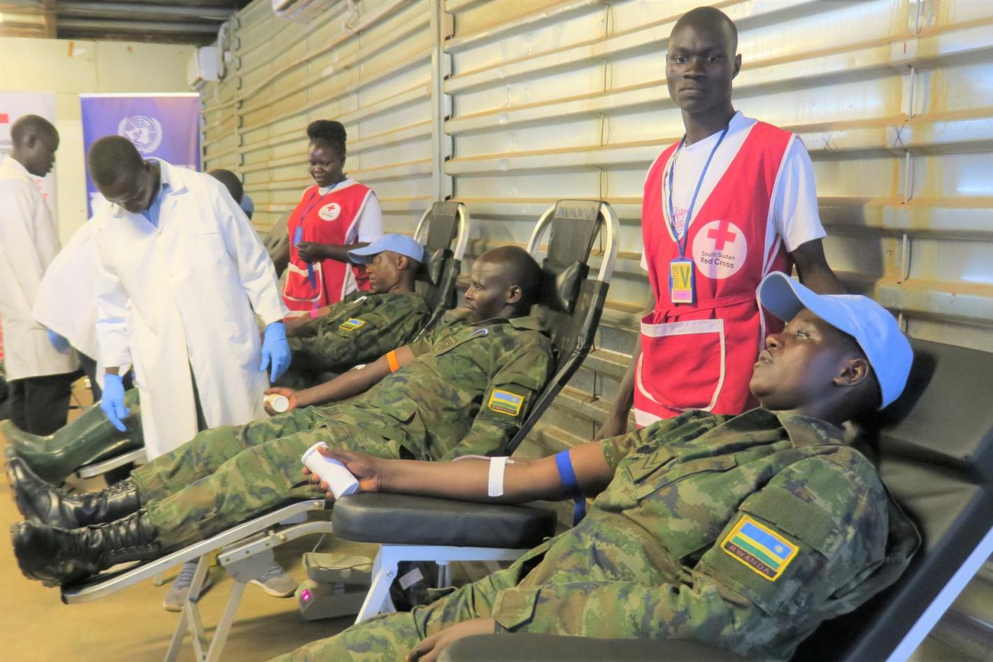 Responding to a call from the Ministry of Health to save the lives of children and pregnant mothers, 60 UNMISS peacekeepers, both military and civilian, donated blood to Torit State Hospital in Central Equatoria. Photo by Moses Yakudu/UNMISS.