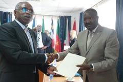 François Ndong Obiang presented the Head of UNOCA with a memorandum summarizing the concerns of the opposition grouped within the coalition “Alternance 2023,” which he chairs. Photo UNOCA/Norbert N. Ouendji