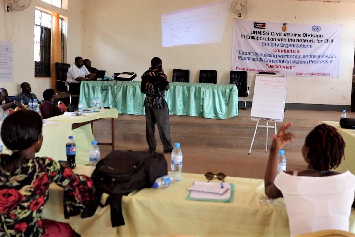 The Civil Society Network in Yambio attending an UNMISS-led workshop on the transitional political process expected to lead to elections next year. Photos: Denis Louro Oliver/UNMISS