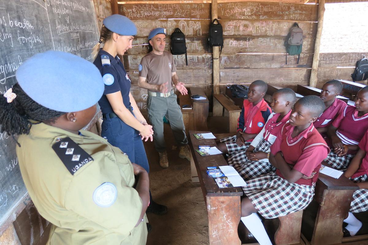 Police officers serving with UNMISS urged girls at a school in Western Equatoria to overcome challenges to finish their studies. Photos: Martin Siba/UNMISS