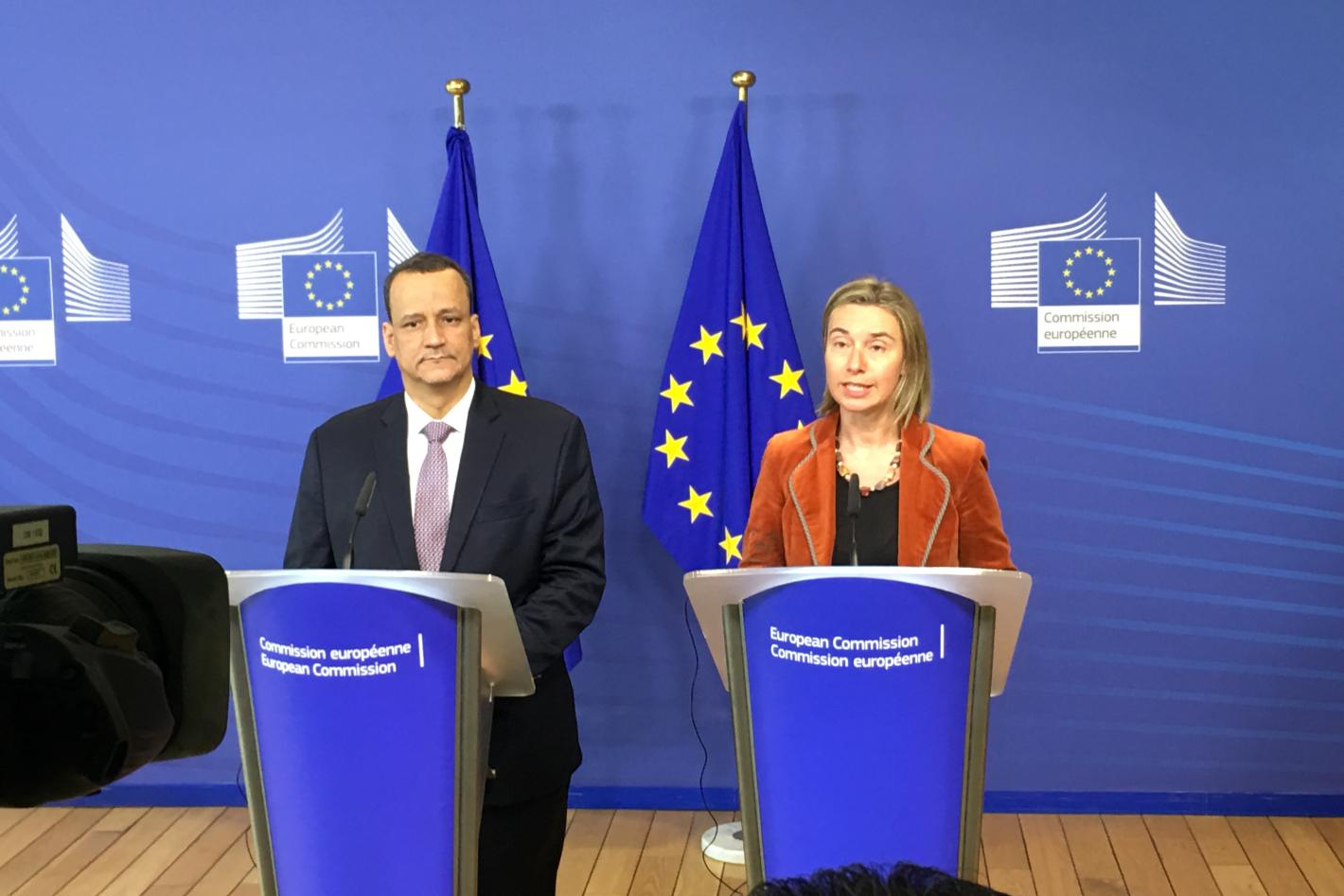 Special Envoy Ismail Ould Cheikh Ahmed with Federica Mogherini, High Representative of the European Union for Foreign Affairs and Security Policy