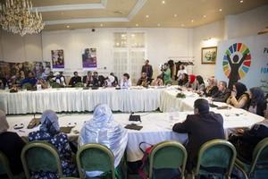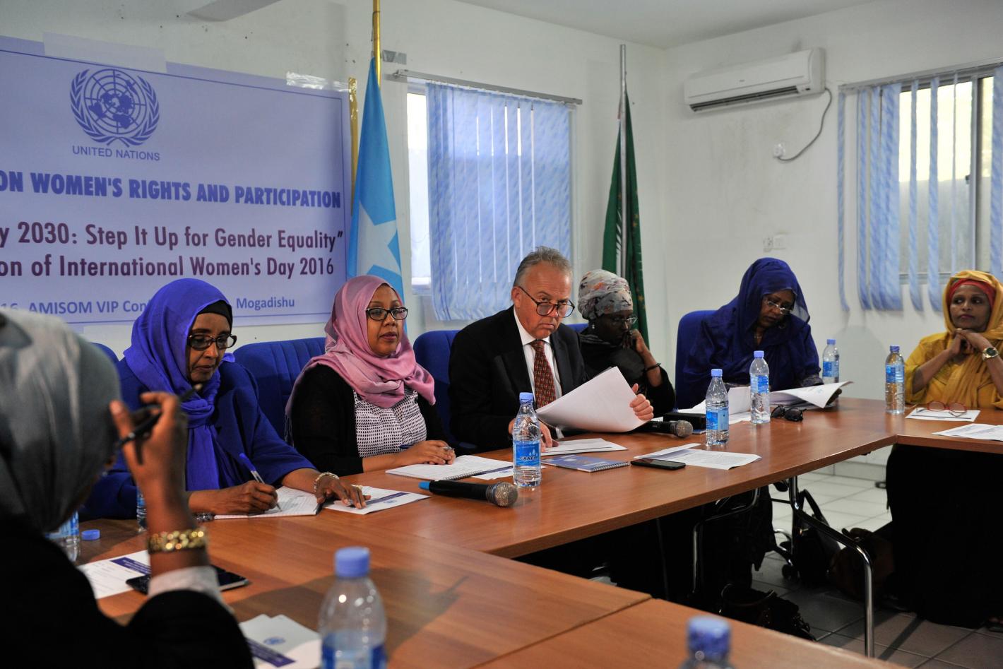 Participants at open day on women's rights and participation hosted by the Special Representative of the United Nations Secretary-General for Somalia, Michael Keating, held in Mogadishu, on March 10, 2016.