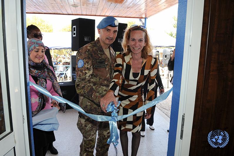 UNIFIL Head of Mission and Force Commander Major-General Luciano Portolano cutting the ribbon to inaugurate UNIFIL’s Resource Centre.