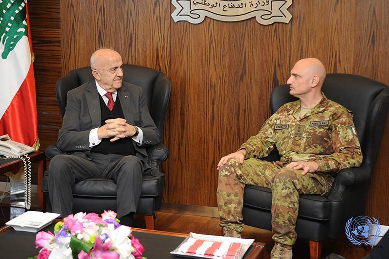 UNIFIL Head of Mission and Force Commander Major-General Luciano Portolano meets Lebanese Deputy Prime Minister and Minister of Defence Samir Moqbel.