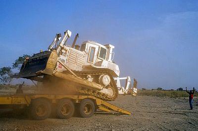 UN Mine Action Service bulldozer arriving in Unity State capital Bentiu ahead of exercise to verify and clear roads. Photo: UNMISS/JC McIlwaine