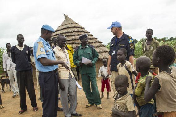UN Police (UNPOL) Advisorsmaking presentation on "Community policing and problem solving" to South Sudan National Police Service (SSNPS) officers in Gogrial West County, Warrap State. UNPOL officers co-locate with local…
